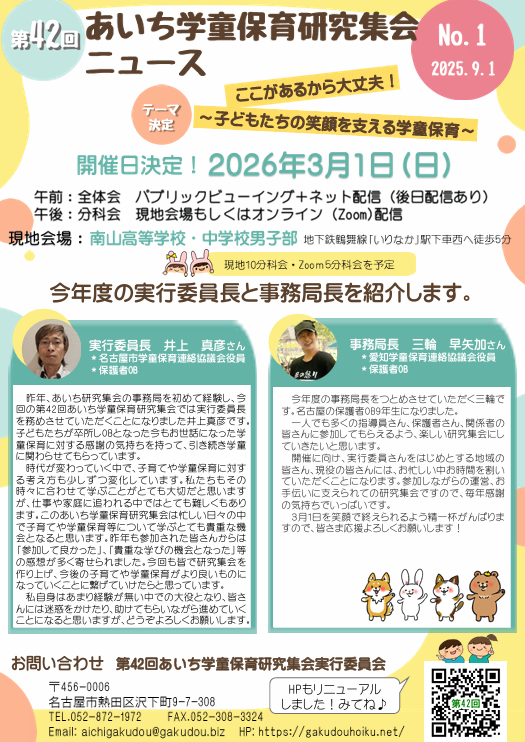 第42回あいち学童保育研究集会ニュースNo.1を発行しました!