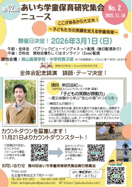 第42回あいち学童保育研究集会ニュースNo.2を発行しました!